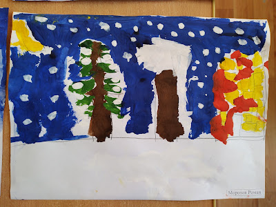 Сегодня ребята учились создавать картины зимней природы, передавать цветом её состояние и настроение.